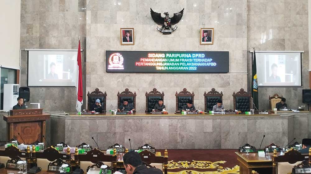 Pandangan umum fraksi-fraksi di DPRD Kabupaten Cirebon itu diberikan sebagai tanggapan atas hantaran Bupati terhadap Pertanggungjawaban Pelaksanaan APBD Tahun Anggaran 2022, sehari sebelumnya.
