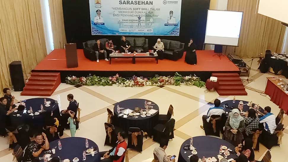 Hal itu disampaikan Kepala Dinas Ketenagakerjaan (Disnaker) Kabupaten Cirebon, Novi Herdrianto, saat kegiatan sarasehan membangun soft skill dalam memasuki dunia kerja bagi penyandang disabilitas, di salah satu hotel Kecamatan Kedawung, Kabupaten Cirebon, Kamis, 8 Juni 2023.