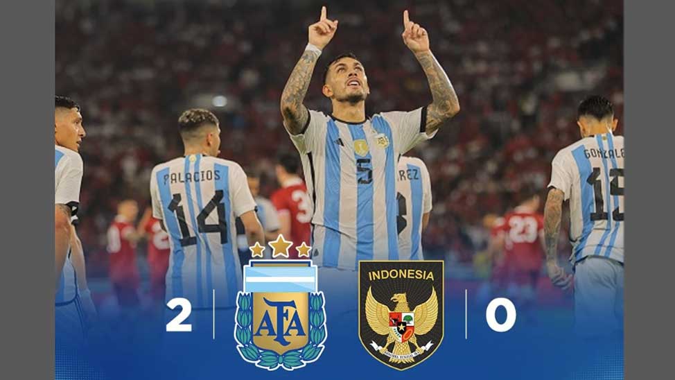 Bermain di Stadion Utama Gelora Bung Karno (GBK) Senayan, Jakarta, Argentina membukukan kemenangan 2-0 melalui gol Leandro Paredes dan Cristian Romero.