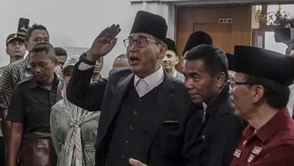 SUARA CIREBON – Pimpinan Pesantren Al Zaytun, Indramayu, Toto Abdusalam alias Panji Gumilang memenuhi janji datang ke Gedung sate untuk memenuhi panggilan Gubernur Jawa Barat, Ridwan Kamil, MUI dan Kantor Kesbangpol.