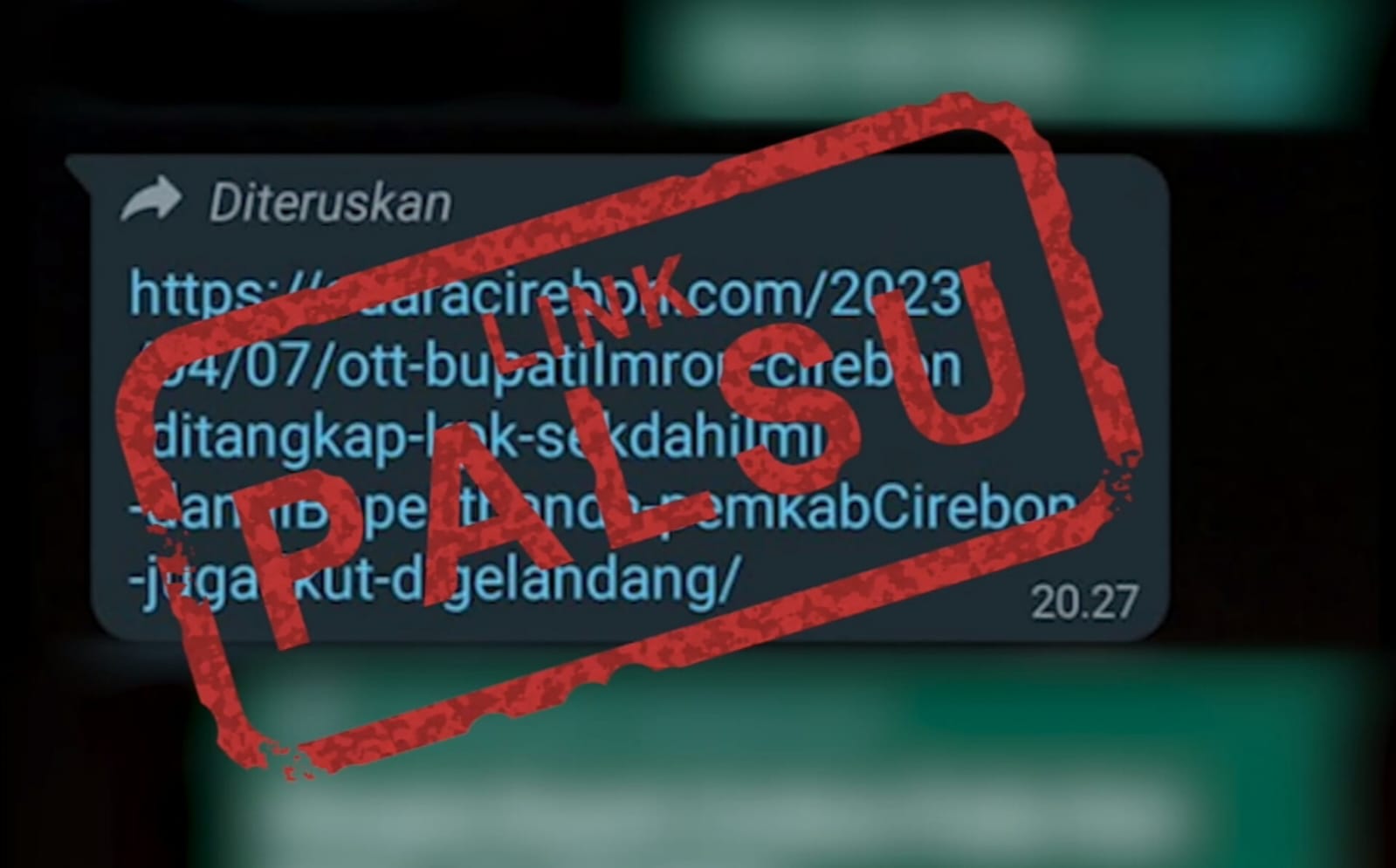 BEREDAR link palsu yang mencatut domain suaracirebon.com di WhatsApp.