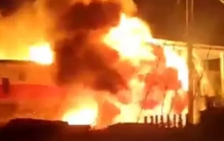 Selain ledakan dan benturan keras, terlihat kobaran api sangat besar, diduga berasal dari bahan bakar minyak (BBM) truk trailer yang tertabrak dan terbakar.