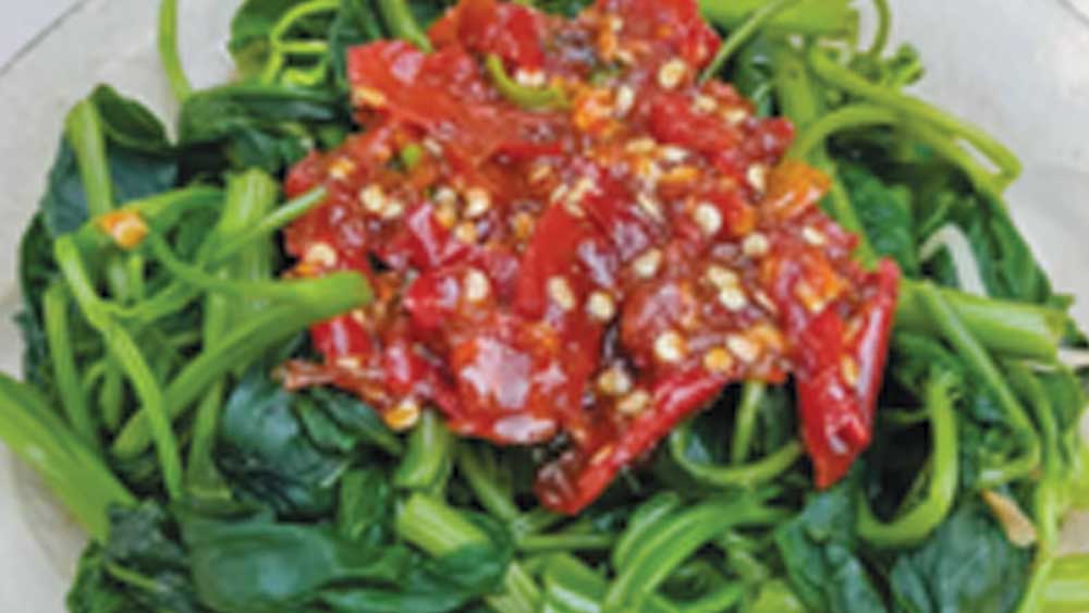 Dengan bumbu sambal terasi yang terlihat menggoda, membuat rasa kangkung lebih nikmat dan cocok sebagai makanan siang.