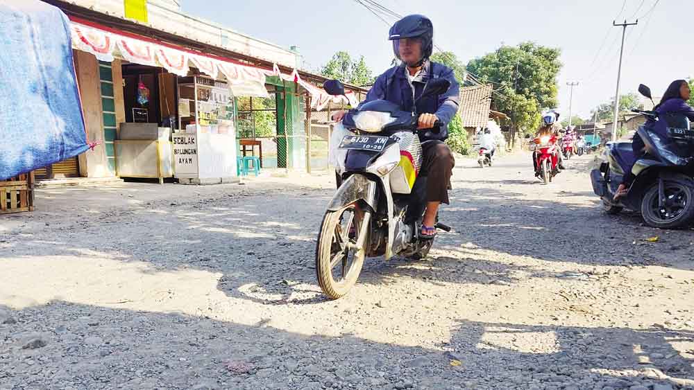 Di lokasi tersebut, sebagian besar jalan sudah berupa bebatuan. Jalan yang masih beraspal hanya tersisa sedikit. Hal itu, menyebabkan pengendara mengalami kesulitan saat melintas di jalan tersebut.