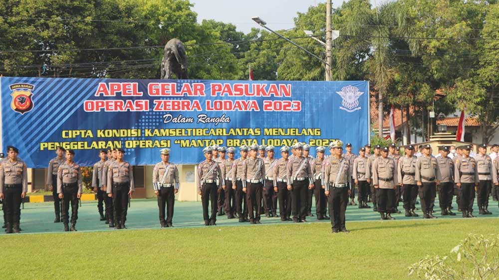 SUARA CIREBON – Jajaran Polresta Cirebon melaksanakan Apel Gelar Pasukan Operasi Zebra Lodaya 2023 sebagai tanda dimulainya operasi di halaman Mapolresta Cirebon, Senin, 4 September 2023.
