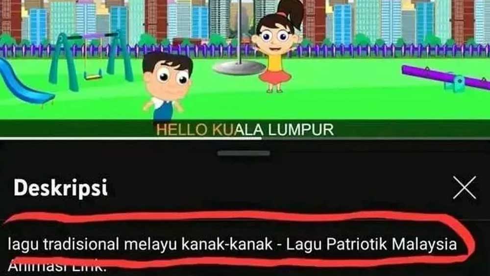 Dalam kanal youtube tersebut, disertakan video animasi anak-anak Malaysia lengkap dengan bendera kebangsaan Negeri Jiran tersebut.