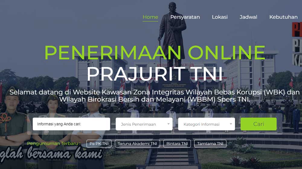 Pembukaan pendaftaran PAPK TNI 2023, berbarengan dengan pembukaan rekrutmen atau seleksi penerimaan CPNS/CASN dan PPPK.