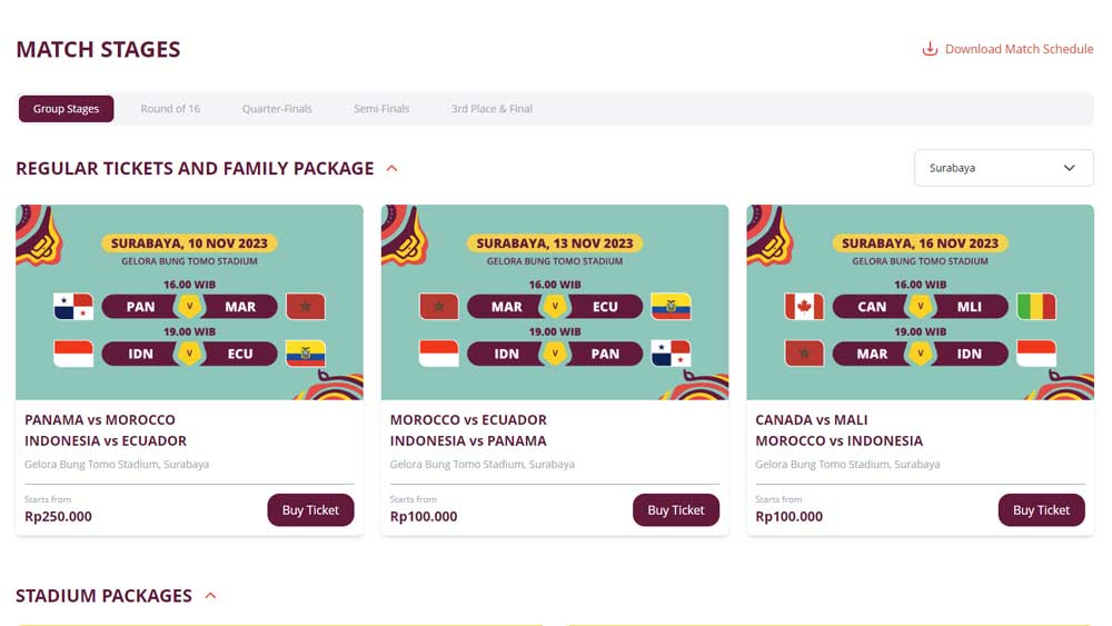 Mengenai prosedur pembelian tiket. Bagi masyarakat yang ingin menyaksikan langsung pertandingan Piala Dunia U17 Indonesia 2023 di stadion, bisa mendaftar lebih dulu di situs resmi FIFA.