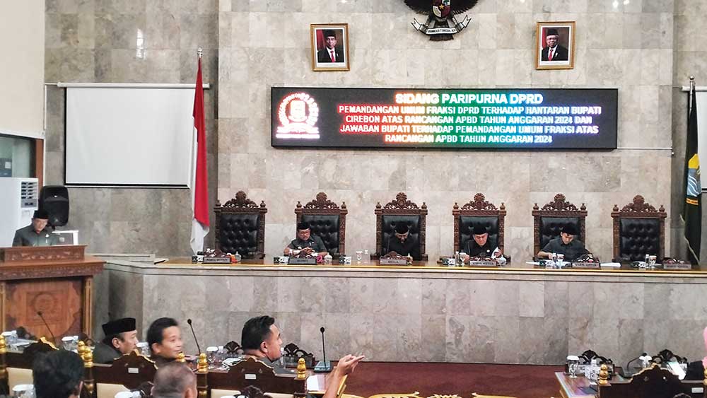 SUARA CIREBON – DPRD Kabupaten Cirebon menggelar rapat paripurna dengan agenda pemandangan umum fraksi terhadap hantaran bupati atas RAPBD tahun anggaran 2024, di ruang rapat paripurna DPRD setempat, Selasa, 3 Oktober 2023.