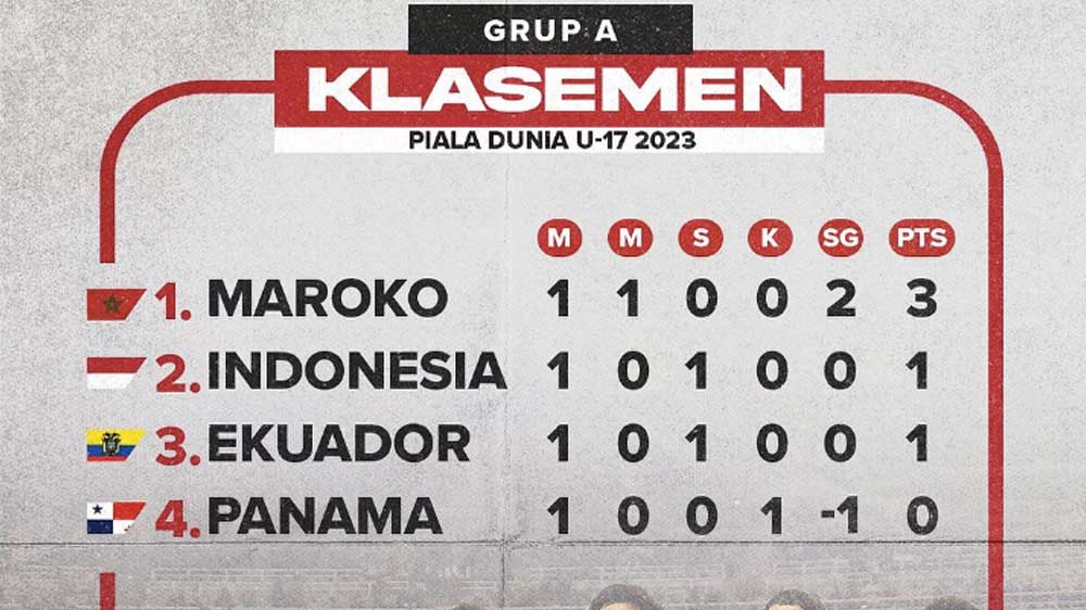 Dengan hasil imbang pada Hari Pahlawan Nasional ini membuat Timnas Indonesia U17 berada di urutan kedua Grup A Piala Dunia U17 2023 dengan nilai satu.