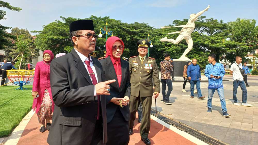 SUARA CIREBON – Pemkab Cirebon resmi membuka Alun-alun Pataraksa Sumber untuk masyarakat umum. Peresmian alun-alun tersebut ditandai dengan pemotongan pita rangkaian bunga melati oleh Wakil Bupati (Wabup) Cirebon, Hj Wahyu Tjiptaningsih, SE, MSi dan penandatanganan prasasti oleh Bupati Cirebon, Drs H Imron, MAg, Jumat, 10 November 2023.