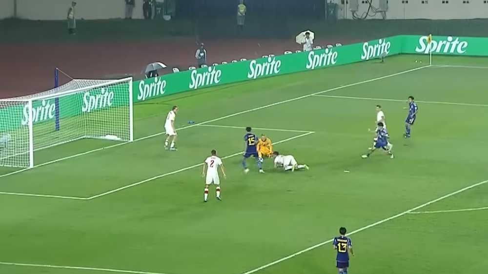 Terjadi pertarungan imbang yang seru. Sampai kemudian memasuki menit ke 77, sebuah serangantaktik Jepang membuat Rento Takaoka mendepatkan momentum terbaik di laha tersebut.