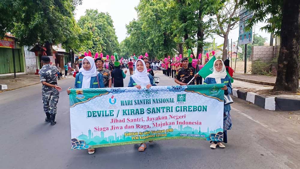 SUARA CIREBON – Sekitar seribu lebih santri dari sejumlah pondok pesantren di Kabupaten Cirebon, mengikuti kirab Hari Santri Nasional (HSN) 2023, yang diselenggarakan oleh Pengurus Cabang Nahdlatul Ulama (PCNU) Kabupaten Cirebon, Minggu 12 November 2023.