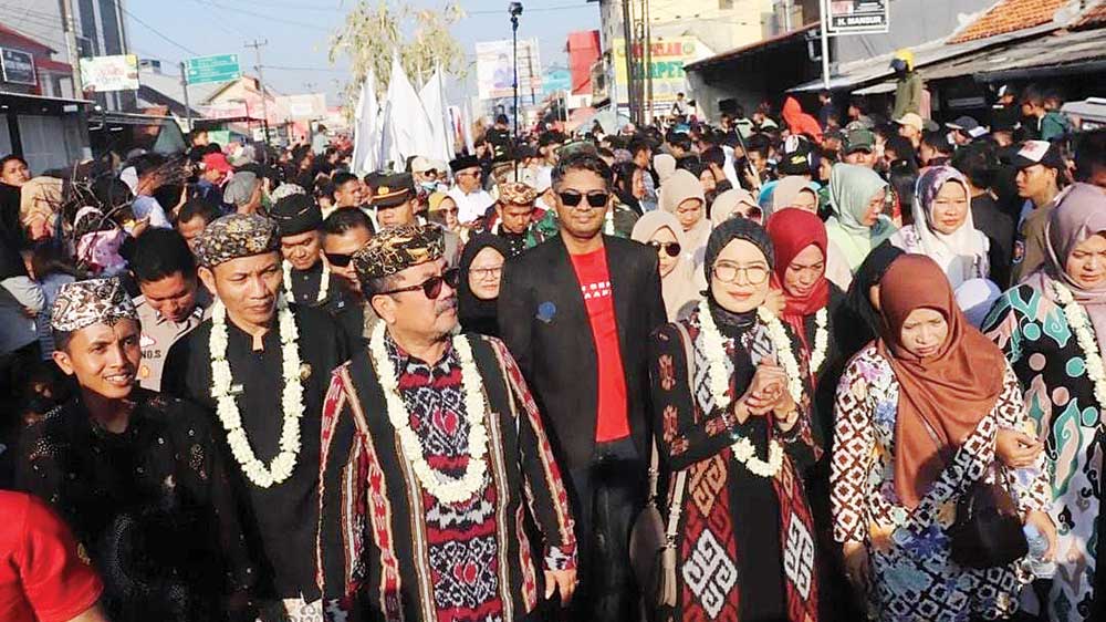 Tak hanya masyarakat, arak-arakan memayu Buyut Trusmi itu dihadiri Bupati Cirebon, H Imron beserta istri.