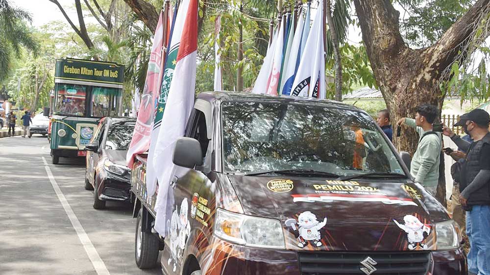SUARA CIREBON – Kirab Pemilu 2024 yang membawa sejumlah bendera partai politik telah tiba di Kabupaten Cirebon, setelah sebelum diserahterimakan dari KPU Kota Tegal Jawa Tengah.
