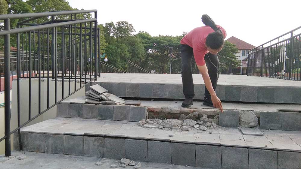 “Pemerintah Kabupaten Cirebon harus ikut mendorong penyedia jasa agar dalam waktu dekat langsung memperbaiki lantai Taman Pataraksa yang rusak serta merampungkan pengerjaan yang masih belum seratus persen,” pungkasnya.***