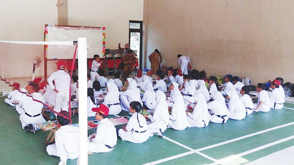 “GOR Desa Kedungdawa jadi tempat KBM sementara murid kelas 1 dan 2,” ujar Muhamad Arifin.