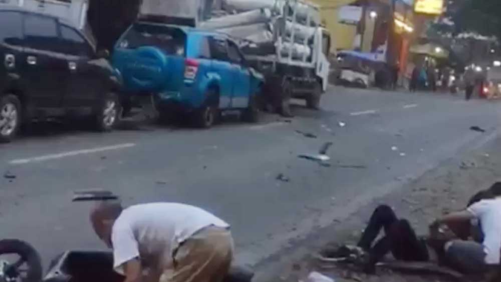 Belasan warga yang kebetulan berada di dekat truk pembawa tabung CNG, gas alam yang dipadatkan, terluka. Satu dikabarkan langsung tewas di tempat, sejumlah luka berat dan luka ringan.