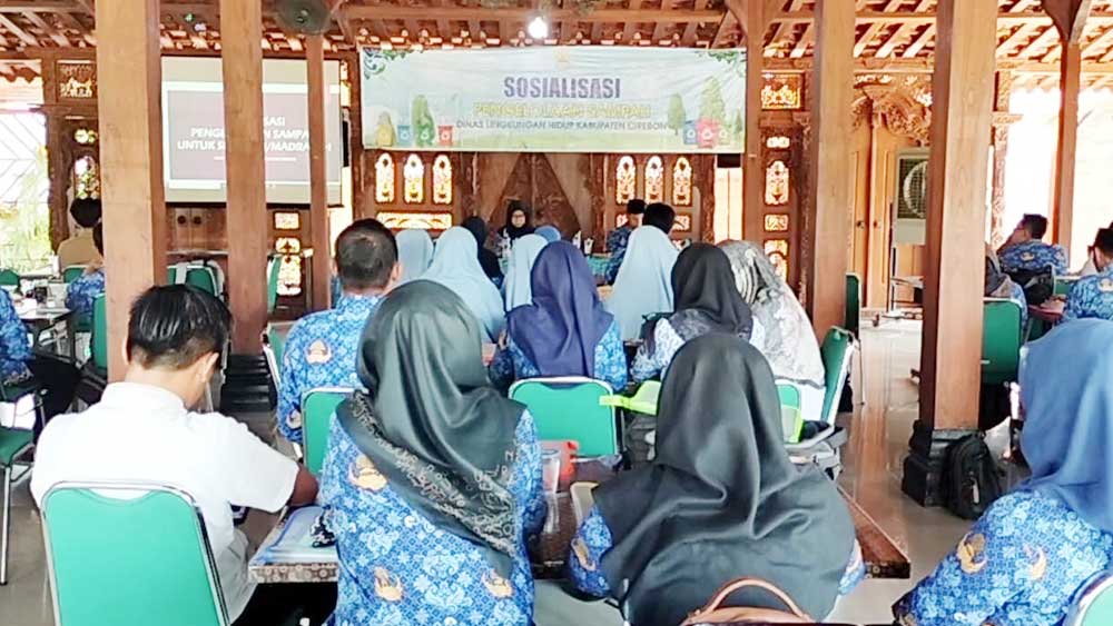 Kabid Peningkatan Kapasitas dan Pemulihan Lingkungan (PKPL) DLH Kabupaten Cirebon, Fifi Erneti, menyampaikan penanganan sampah secara mandiri untuk disosialisasikan dan disamakan persepsinya khususnya pengelolaan lingkungan hidup di sekolah pada umumnya.
