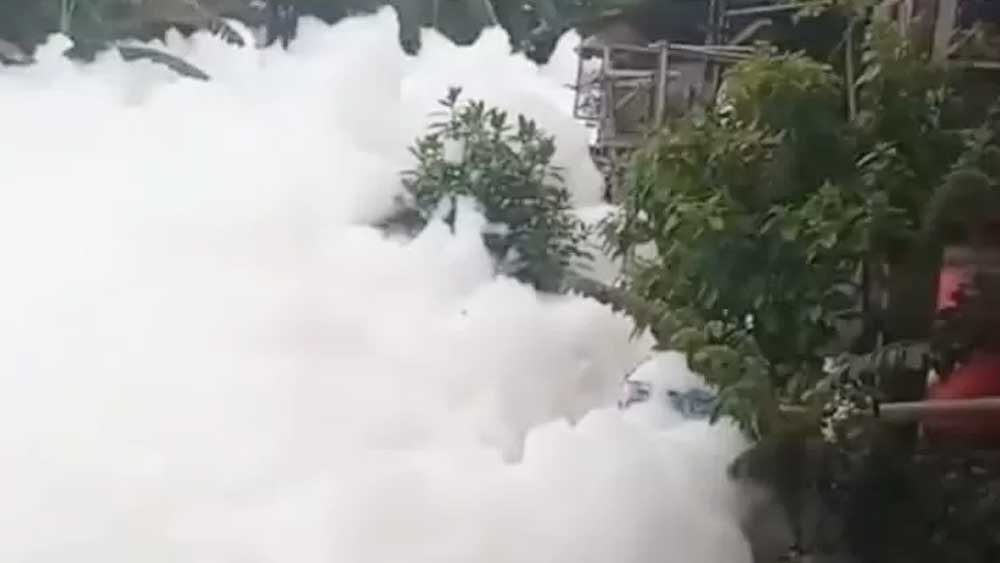 Bahkan dari berbagai video amatir yang beredar luas, terlihat busa berwarna putih bersih yang membentuk gumpalan raksasa memunculkan pemandangan seolah-olah rumah di kiri kanan sungai seperti di atas gumpalan awan.