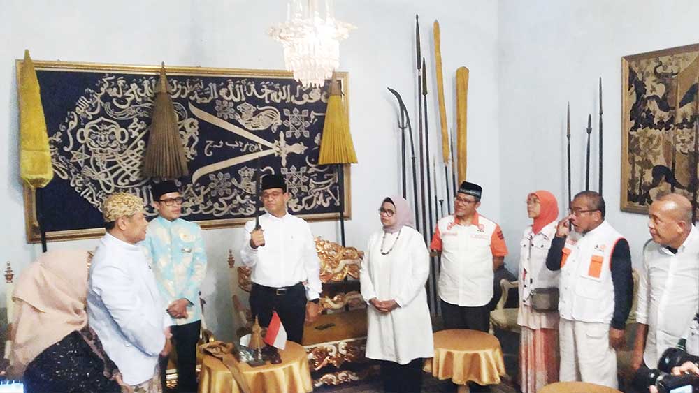 Di Keraton Kasepuhan, kedatangan Anies beserta istri dan rombongan tim pemenangan nasional disambut langsung Sultan Sepuh XV PRA Luqman Zulkaedin beserta istri, Patih Sepuh Keraton Kasepuhan Pangeran Raja Goemelar PP dan keluarga Keraton Kasepuhan lainnya.