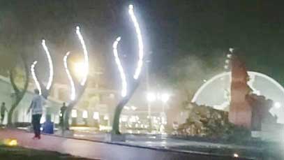SUARA CIREBON – Gapura tradisional Alun-alun Pataraksa Sumber yang baru diresmikan pada 10 November 2023 lalu, ambruk pada, Selasa, 2 Januari 2024 malam.