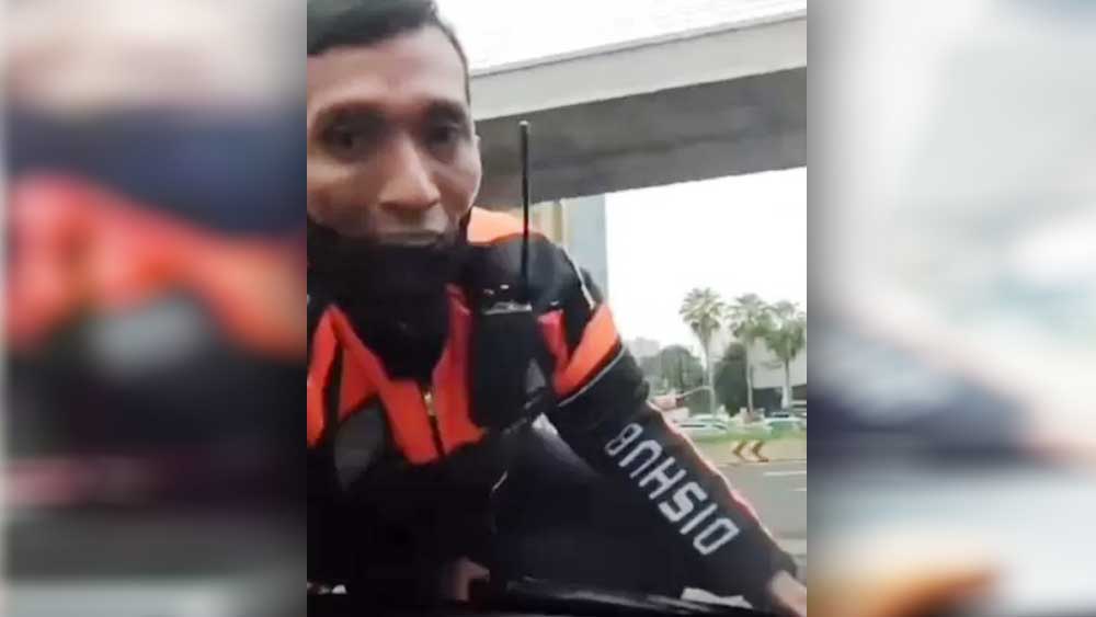 “Kenapa lo, kenapa,” tutur si pengendara mobil terlihat mengejek.