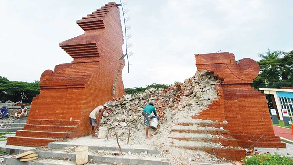 “Sejak banyaknya laporan yang masuk, kami langsung sidak ke lokasi. Kita temukan banyak item pekerjaan yang dikerjakan asal-asalan. Terbukti sekarang, gapura akhirnya ambruk. Padahal sejak awal kondisinya sudah retak,” ungkap Yoga, Kamis, 4 Januari 2024.