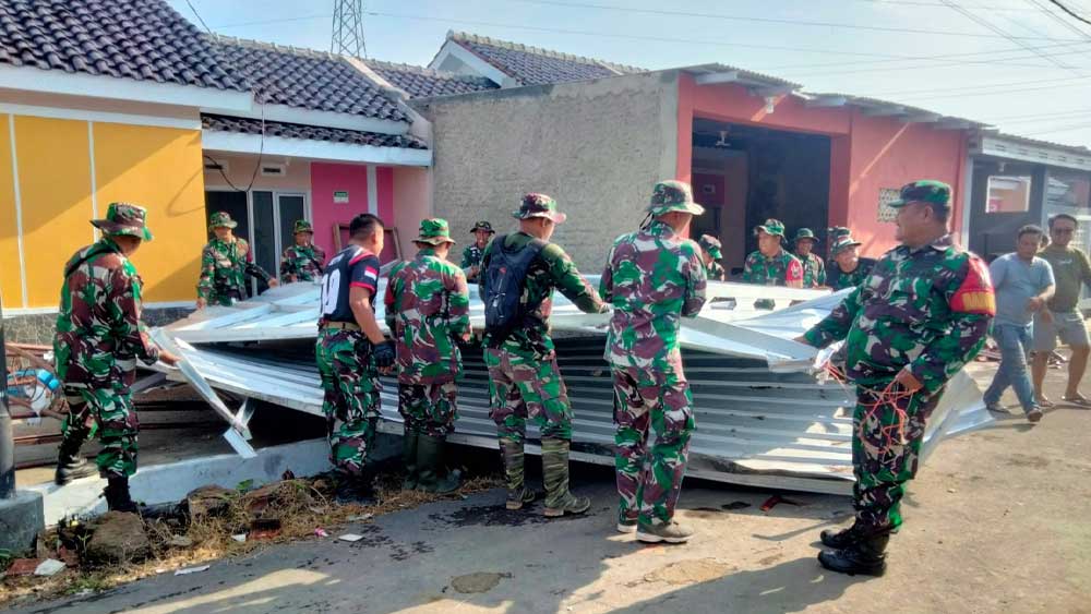 Untuk itu, kata Tarjo, sebanyak 20 personil Koramil Astanajapura terjun langsung ke lokasi kejadian untuk membantu warga yang terdampak terjangan angin puting beliung di Desa Banjarwangunan.