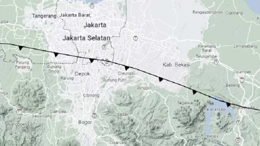 Berikut lintasan patahan tektonik Sesar Baribis di Jawa Barat, DKI Jakarta sampai Banten :
