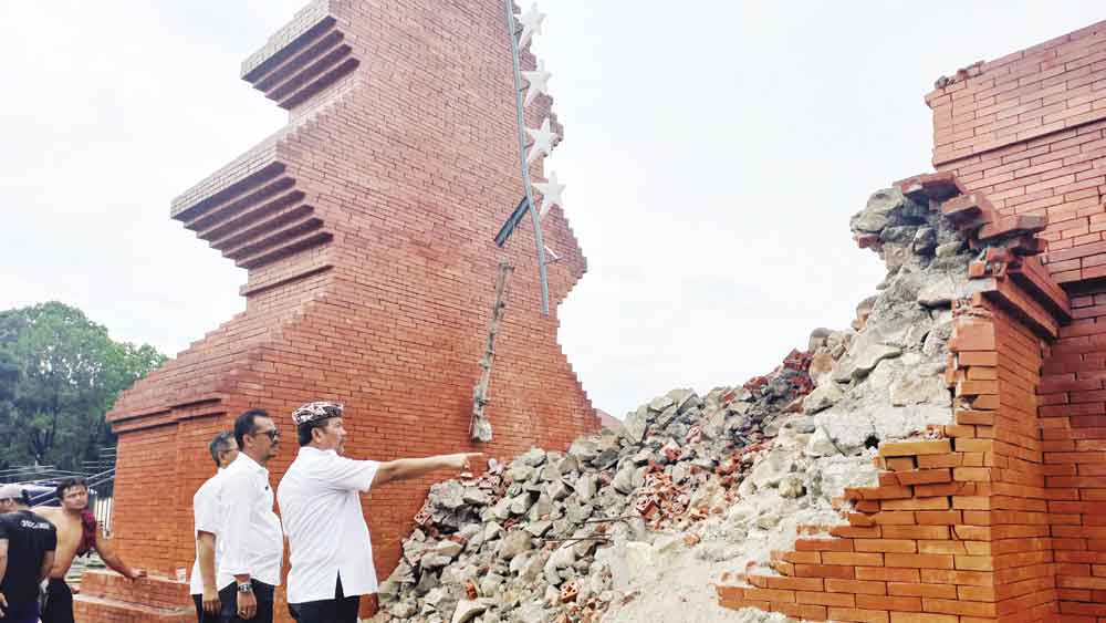 “Padahal, kita bangga punya ikon baru di pusat pemerintahan. Tapi ikon itu jadi viral karena robohnya bangunan gapura tradisional Alun-alun Pataraksa,” pungkasnya.***