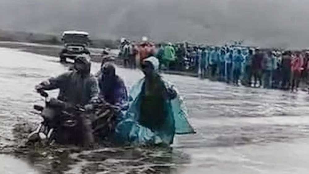 Banjir menutupi permukaan padang pasir yang luas di kawasan wisata Gunung Bromo dan berubah seperti benar-benar lautan air. Sejumlah motor dan jeep wisata dikabarkan sempat terjebak.