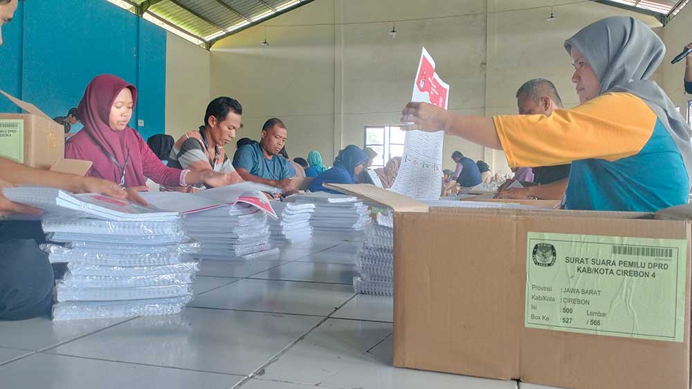 SUARA CIREBON – Ketua Komisi Pemilihan Umum (KPU) Kabupaten Cirebon, Sopidi mengaku pesimis pekerjaan sortir dan lipat (Sorlip) surat suara Pemilu 2024, akan selesai kalau dalam waktu 14 hari. Pasalnya selama tiga hari pelaksanaan sorlip surat suara, target harian tidak tercapai.