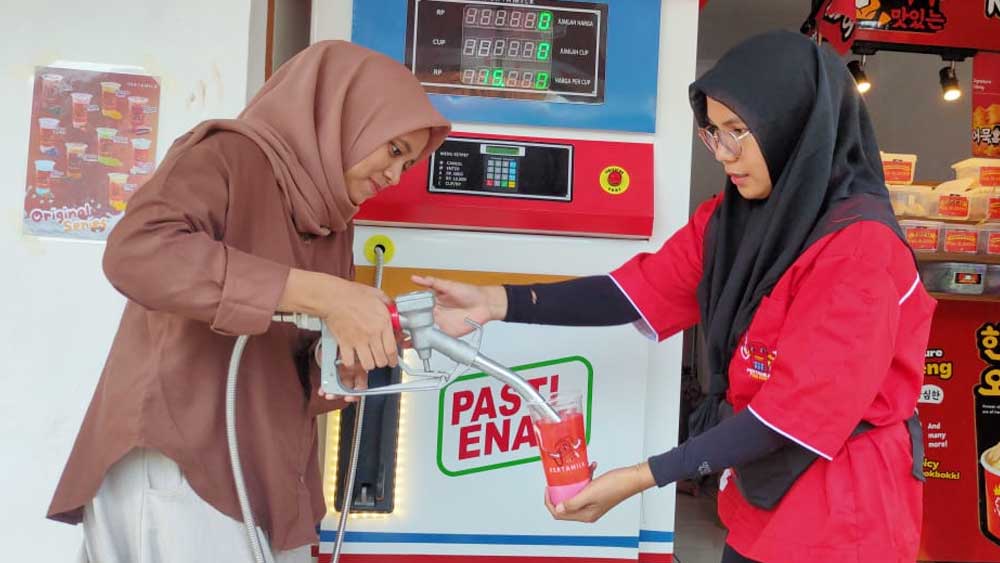 SUARA CIREBON – Unik dan menarik. Ada sebuah gerai minuman susu yang memiliki tampilan layaknya SPBU, lengkap dengan tersedianya mesin untuk mengisi Bahan Bakar Minyak (BBM). Bahkan, cara penyajiannya pun seperti layaknya mengisi bahan bakar pada kendaraan.