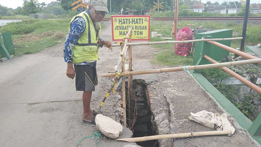 “Saat ini kondisi jembatan itu bahkan sudah hampir putus. Ini bukan yang pertama terjadi, tapi ini sudah yang kedua kalinya. Pemerintah desa usah berupaya menutup dengan besi plat dan kemudian diaspal, tetapi tidak kuat bertahan lama malah sekarang lubang tersebut bertambah besar,” kata Akhmad Dandon, Rabu, 17 Januari 2024.