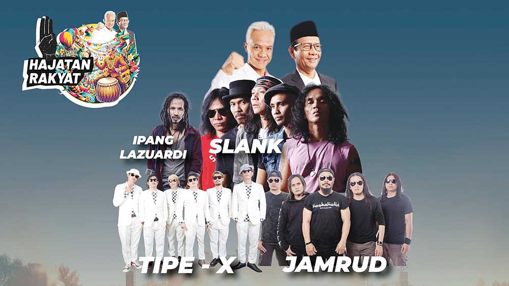 Kegiatan yang bertajuk Hajatan Rakyat itu akan dimeriahkan penampilan band-band terkenal, seperti Slank, Jamrud, Kuburan Band, Tipex dan sejumlah artis nasional lainnya.