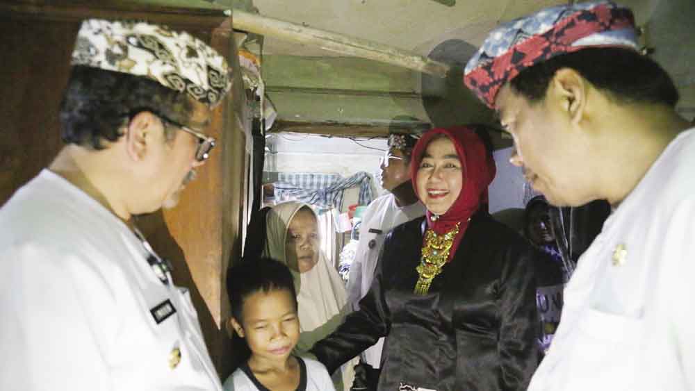 Bupati Cirebon Imron meninjau langsung kondisi rumah Nursiba, didampingi sejumlah dinas terkait seperti dinas sosial (dinsos) dan dinas pekerjaan umum dan tata ruang (PUTR), Forkopimcam Plered serta kuwu Panembahan.