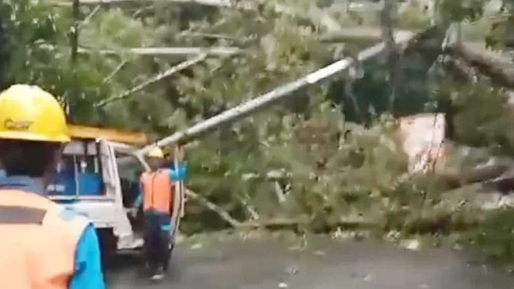 Petugas segera membersihkan bahu jalan dari dahan, ranting dan batang pohon besar tersebut.
