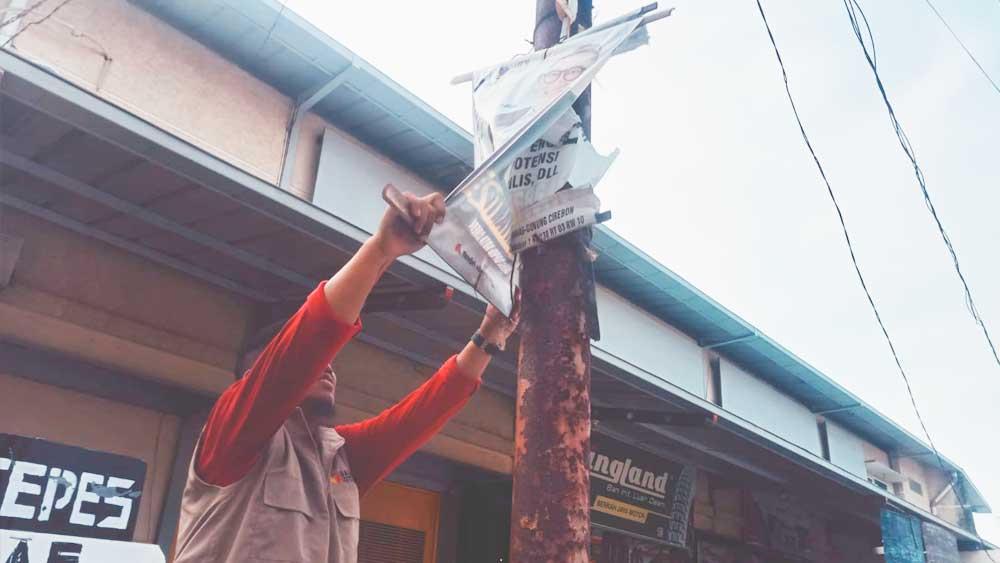SUARA CIREBON – Panwascam Kejaksan, Kota Cirebon, melakukan penertiban alat peraga kampanye atau APK selama masa tenang pemilu 2024 ini.