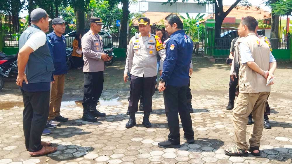 SUARA CIREBON – Wakapolresta Cirebon, AKBP Dedy Darmawansyah bersama Komisioner KPU Kabupaten Cirebon melakukan pengecekan lokasi Tempat Pemungutan Suara (TPS) cadangan di Desa Melaksari, Kecamatan Gebang, Kabupaten Cirebon, Selasa, 13 Februari 2024.