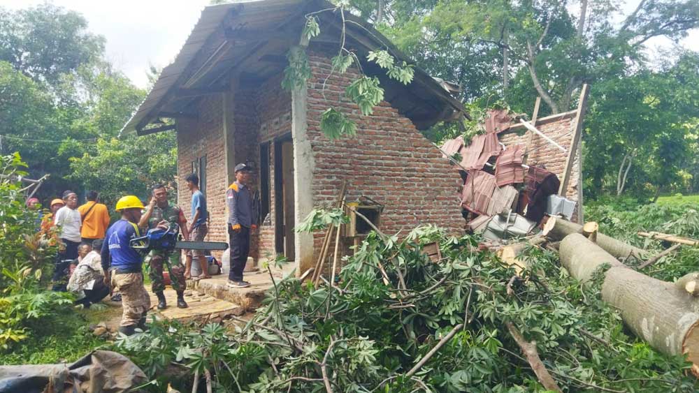 Akibatnya, dinding dan atap rumah tersebut ambruk, tertimpa pohon randu berusia puluhan tahun ini.