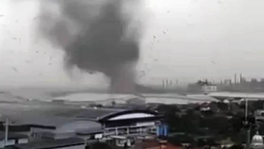 Sebuah video, terlihat dengan jelas dari kejauhan saat angin puting beliung berputar menerjang pabrik Kahatex Cimanggung Sumedang. Pusaran angin yang sangat kencang membawa material berupa atap dari pabrik Kahate Sumedang.