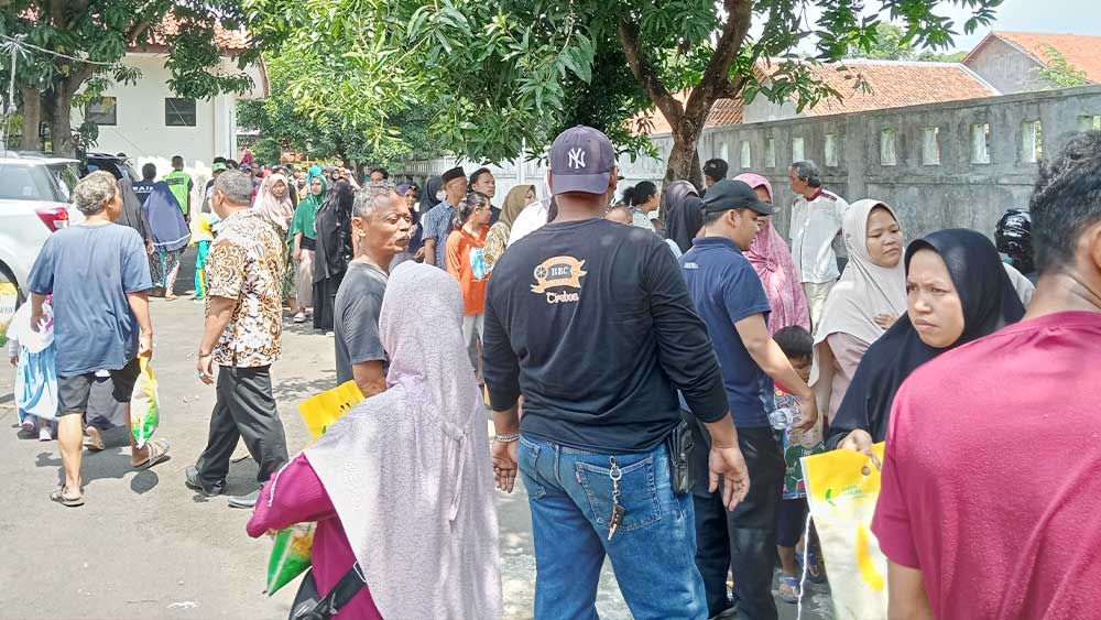 Ribuan warga Kabupaten Indramayu ini membentuk antrean panjang untuk membeli beras murah sejak operasi pasar digelar.