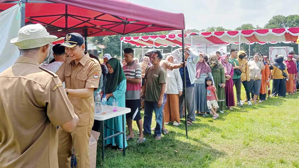 GPM ini digelar Dinas Ketahanan Pangan Kabupaten Cirebon di lapangan Desa Cikeduk, Kecamatan Depok dan langsung diserbu masyarakat sekitar.