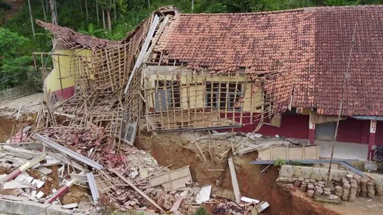 Sejumlah rumah warga dikabarkan telah ambruk akibat pergerakan tanah. Bahkan satu gedung sekolah, yakni SD 1 Babakan Talang, juga roboh.