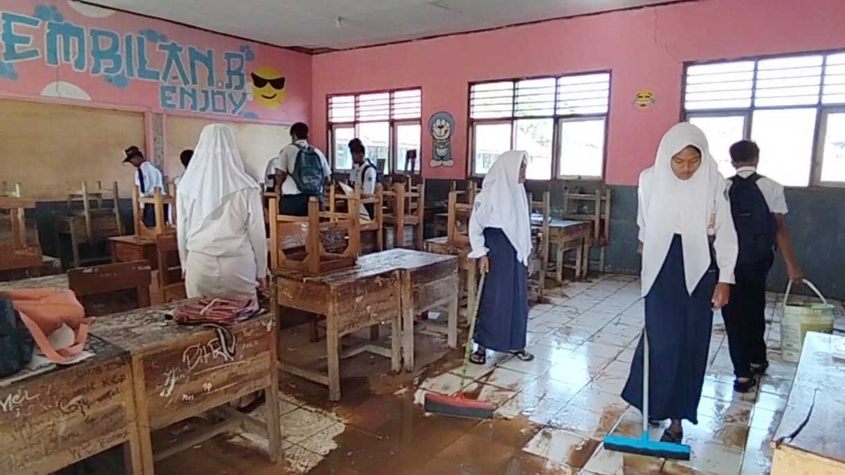 “Semua lumpur mengendap di ruang kelas, guru, hingga ruang laboratorium. Bahkan lumpur yang terbawa banjir pada Sabtu kemarin mulai mengeras dan menimbulkan aroma bau yang kurang sedap di dalam ruangan,” katanya.
