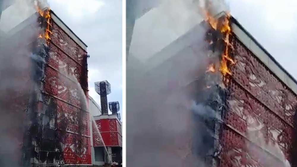 Saat melihat kejadian tersebut, ia pun langsung memanggil semua OB dan rekan satpam lainnya untuk melakukan pemadaman menggunakan alat seadanya.