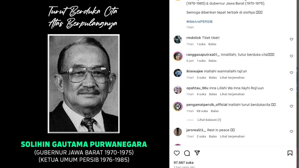 Wafatnya Letjen TNI Purn. Solohin Gautama Purwanegara atau lebih akrab dikenal dengan Solihin GP ternyata memunculkan duka mendalam bagi Persib Bandung.