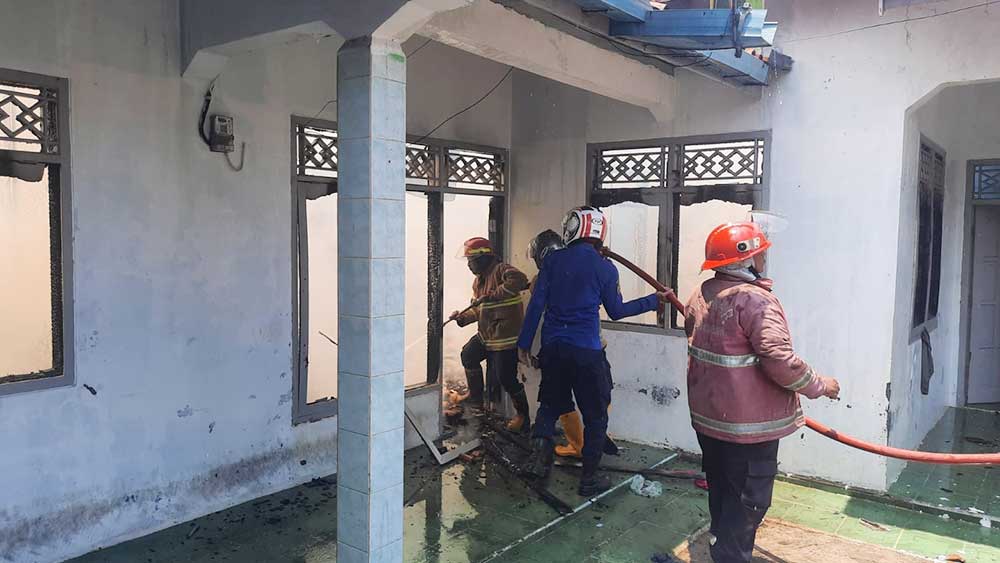 “Api awal diketahui oleh pemilik rumah pada jam 10.35 WIB di kamar tidur belakang. Diduga api timbul akibat kipas angin dinding yang terbakar (korslet) sehingga timbul api dan membakar plafon kamar tidur,” kata Eno Sujana.