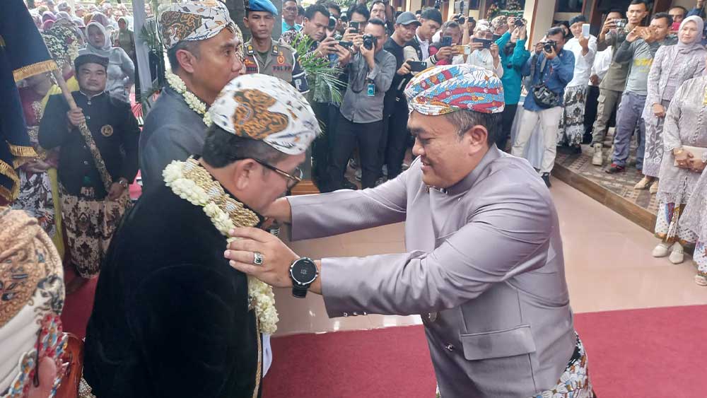 Rombongan Bupati Imron dan Pj Gubernur Beh Machmudin disambut dan diiringi gamelan rentang dalam proses Mapag Kanjeng Dalem.